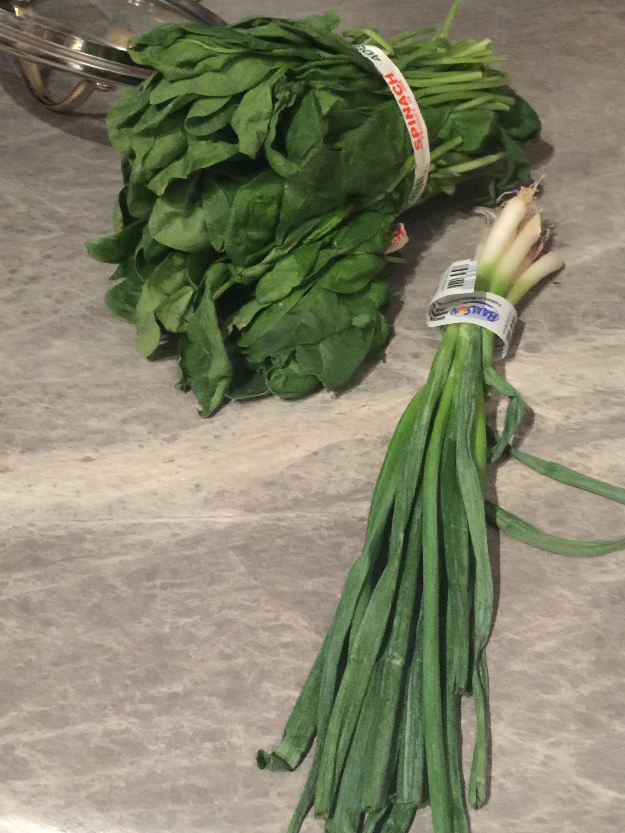 While the water is heating up rinse and destem a few leaves of spinach.